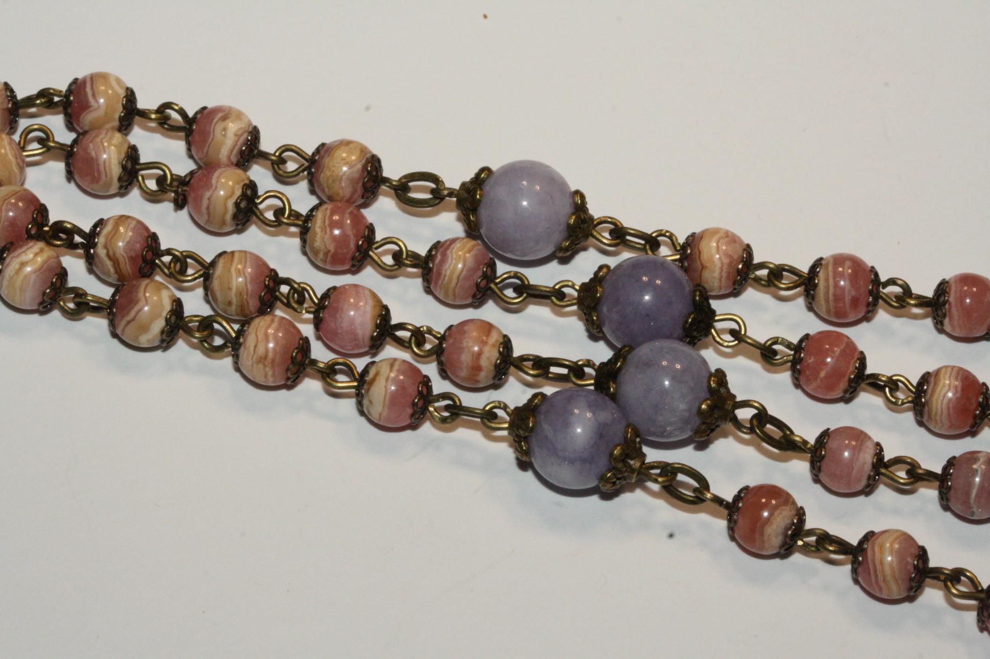 Tiny 5mm Peruvian Rhodochrosite Rosary with Purple Chalcedony Spacer Beads in Bronze Handmade in Oklahoma (Last of these beads)