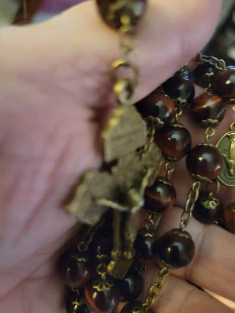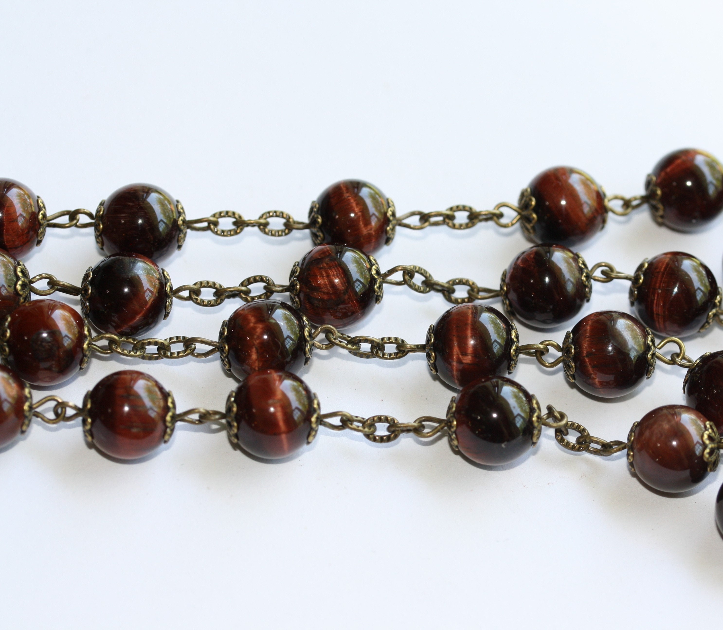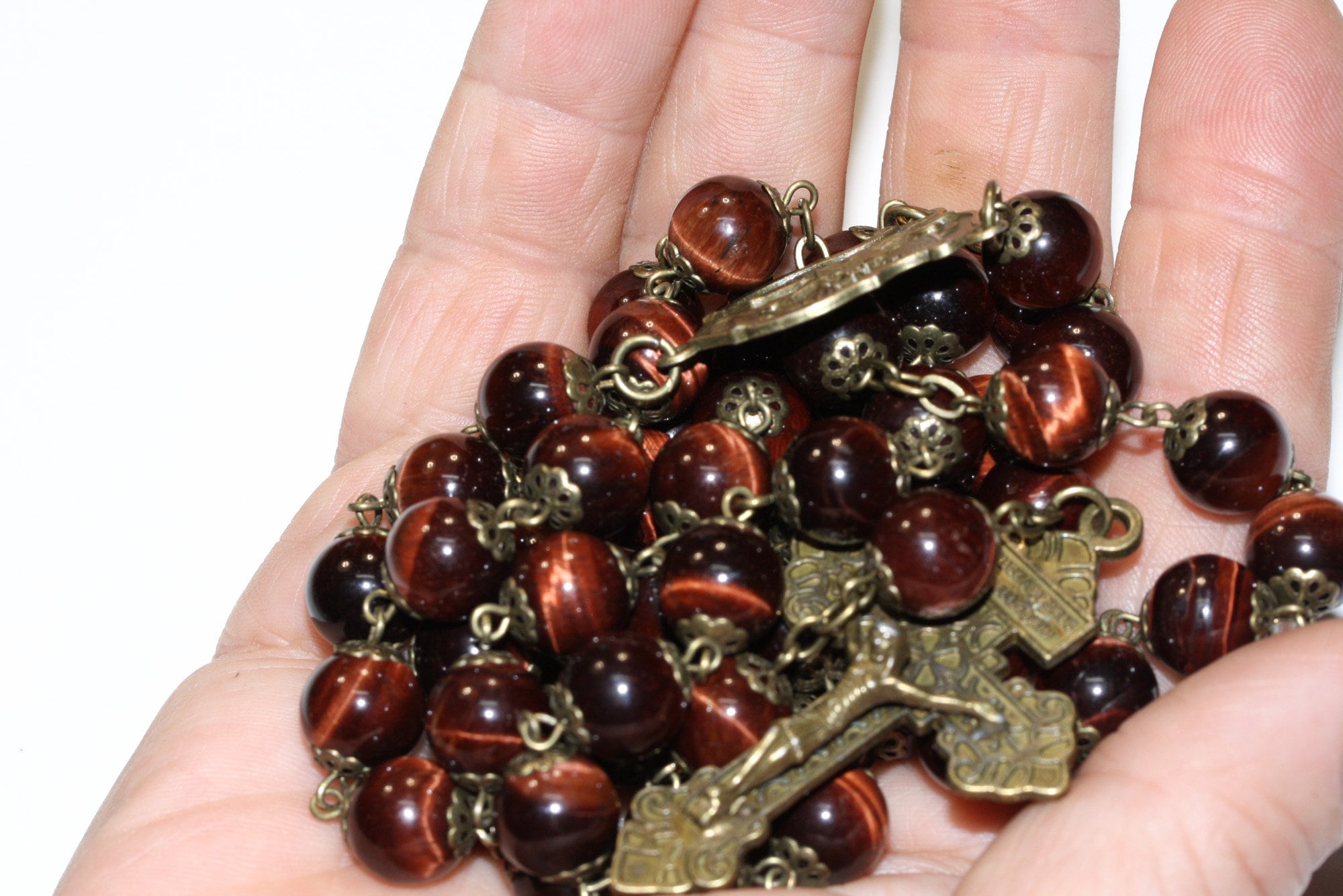 10mm Red Tigereye and Bronze oversized 10mm rosary with Pardon Crucifix handmade in Oklahoma