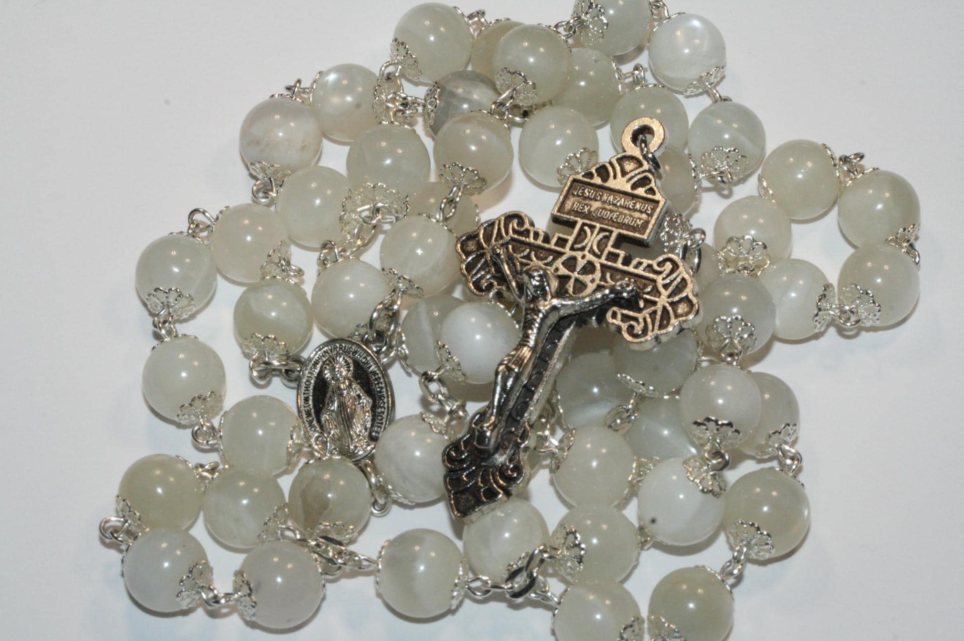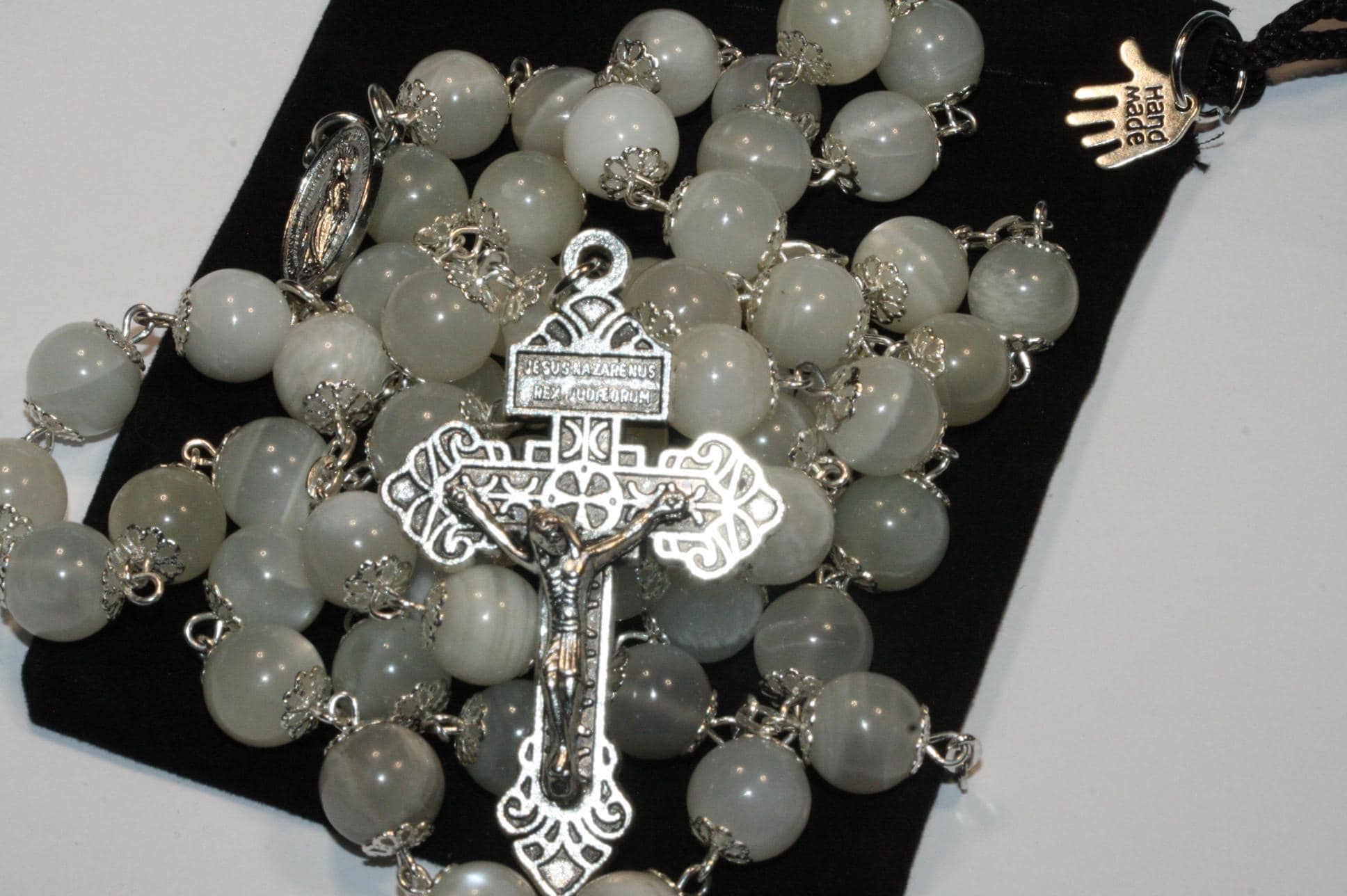10mm Moonstone Pardon Rosary in Silver Handmade Oklahoma
