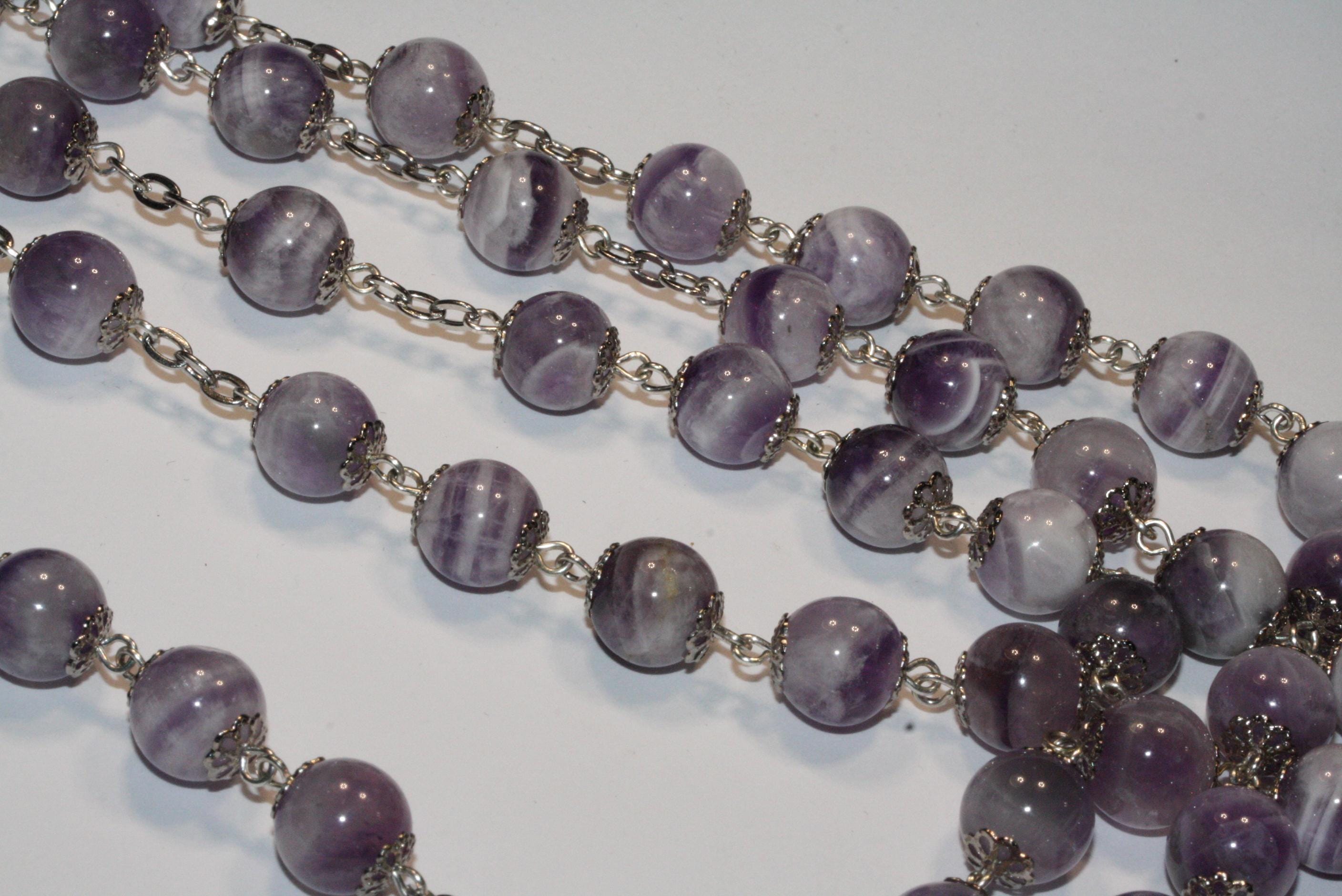 Lavender Amethyst Rosary in Silver with Pardon Crucifix Handmade in Oklahoma
