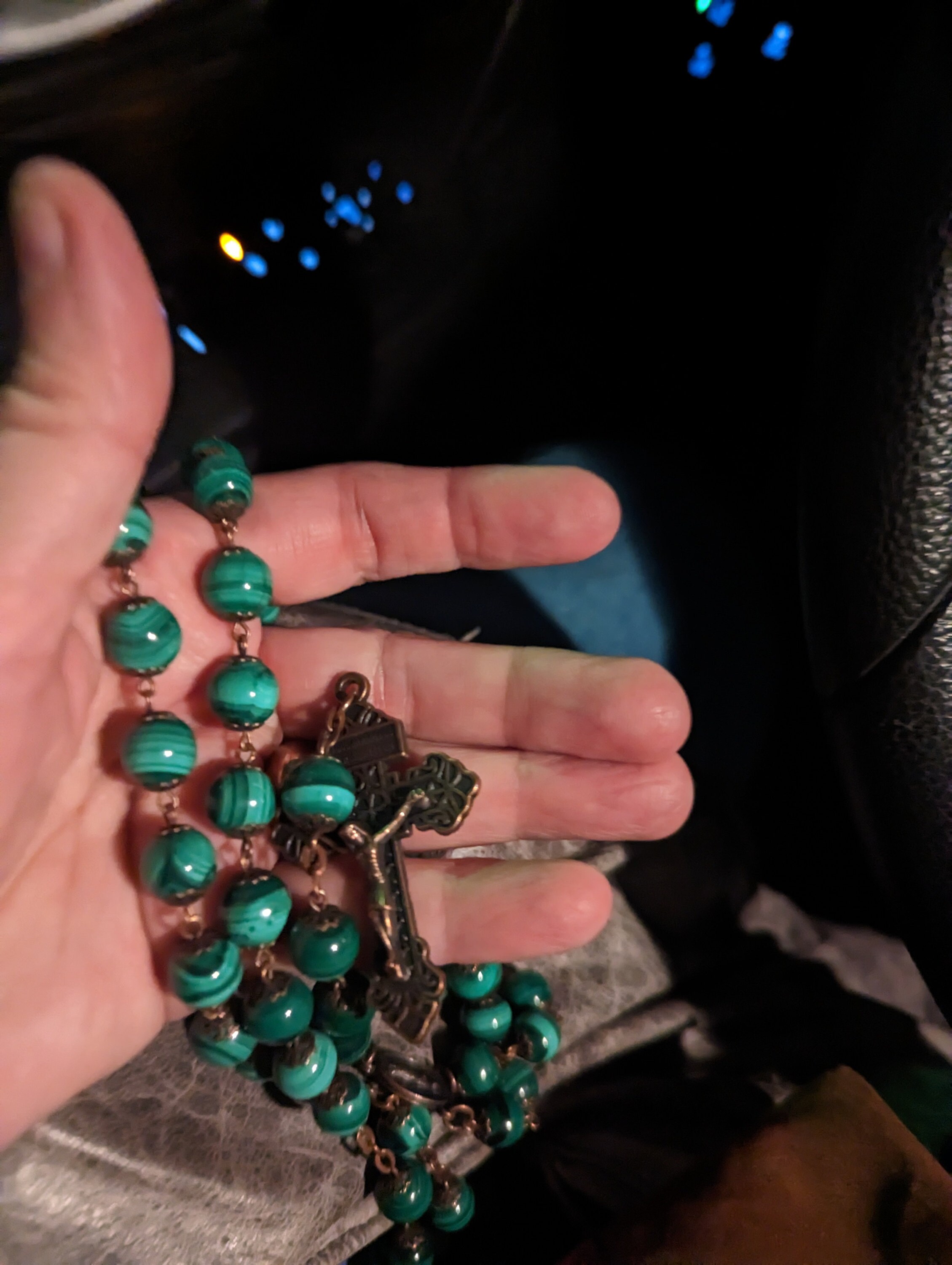 Beautiful, genuine malachite rosary. Could not be happier. Even the priest who blessed it said, "Oh, that's a nice rosary! Where did you get it?"