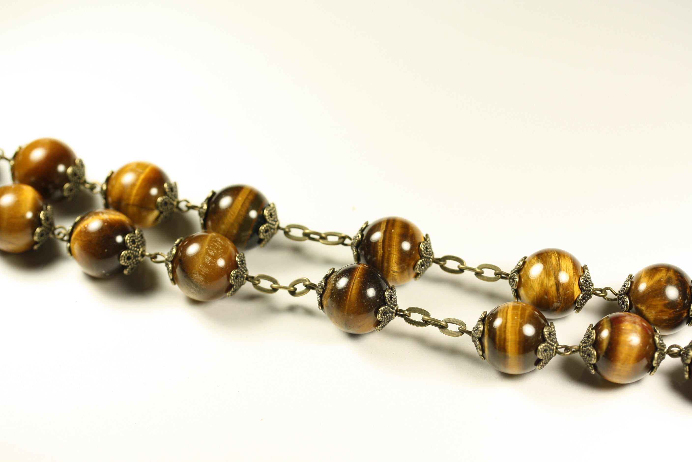 This enormous 14mm stone bead rosary accented in ornate bronze bead caps and finished with a deluxe 4 inch Crucifix will decorate and inspire any living space.